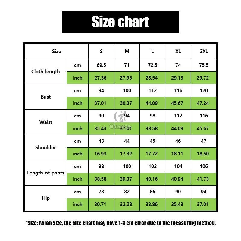Included Items: Top, pants, armband, belt