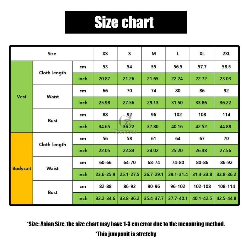 Included Items:Â Headband, bow tie, jumpsuit, collar, bracelet, stockings, vest, arm loop