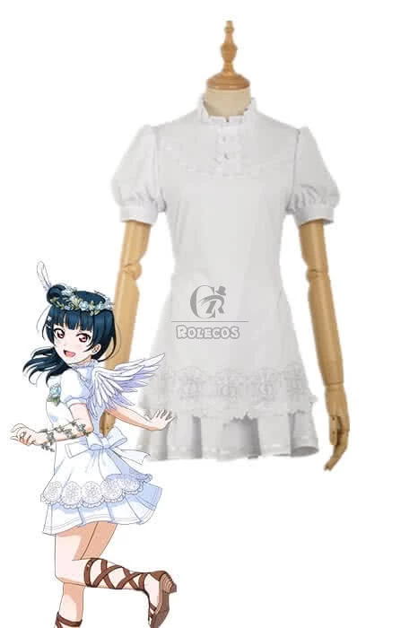 Love Live Sunshine Angel Aqours Unawaken Yoshiko Tsushima White Dress Anime Cosplay Costumes