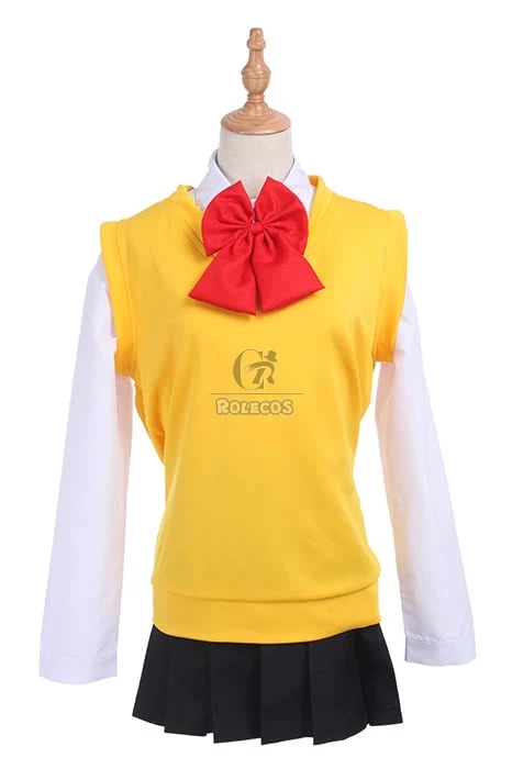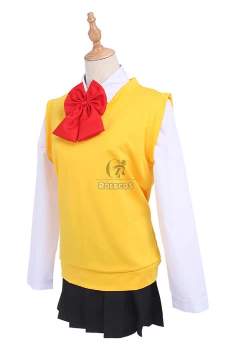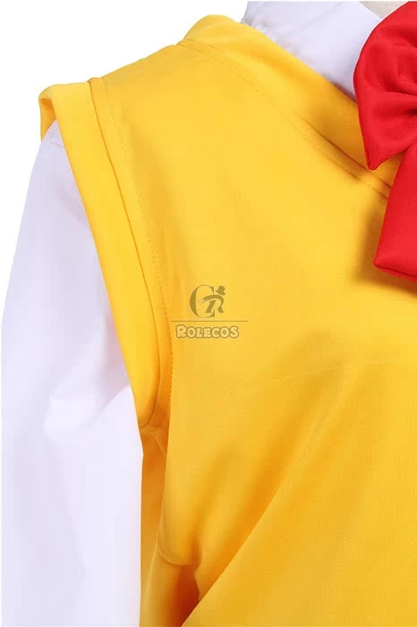 Features:This costume is based on the role Mitsuha Miyamizu in the movie Your Name. Simple preppy style, bright yellow v-neck vest will make you look so young.
