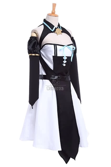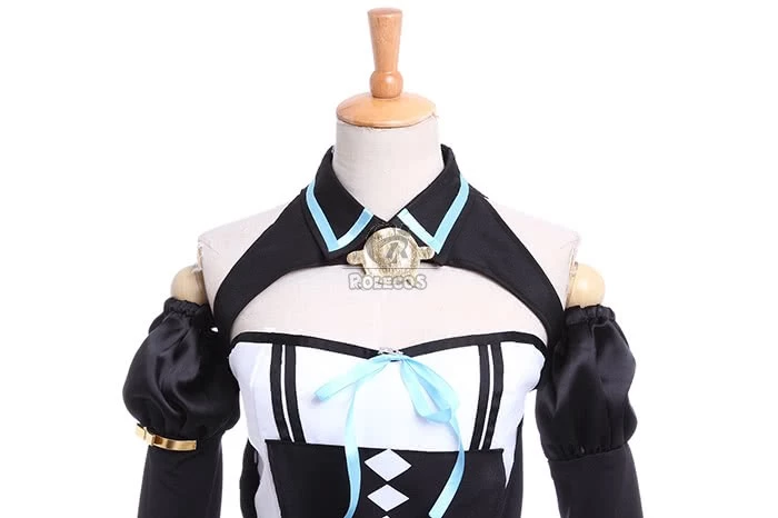 Features: A black and white dress with detached black sleeves, a blue bow decorates the front of her bodice, so personality, this costume will surely make you a bright spot in the party.